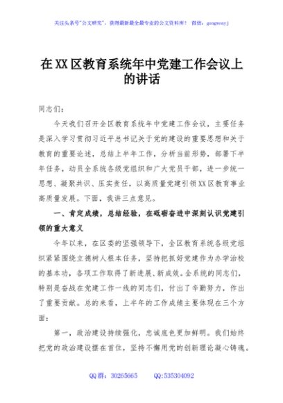 / 在XX区教育系统年中党建工作会议上的讲话