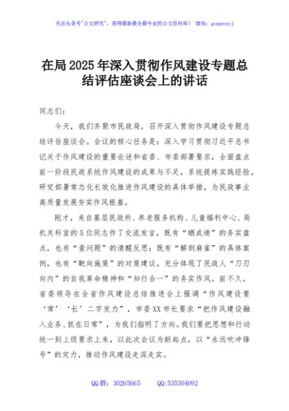 / 在局2025年深入贯彻作风建设专题总结评估座谈会上的讲话