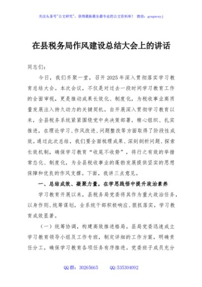 / 在县税务局作风建设总结大会上的讲话