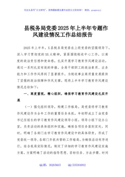 / 县税务局党委2025年上半年专题作风建设情况工作总结报告
