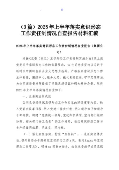/ (3篇)2025年上半年落实意识形态工作责任制情况自查报告材料汇编