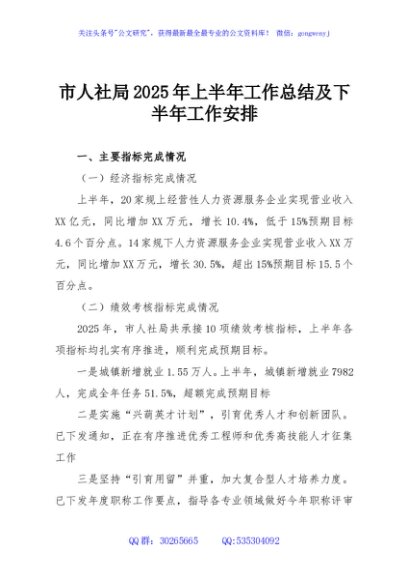 / 市人社局2025年上半年工作总结及下半年工作安排