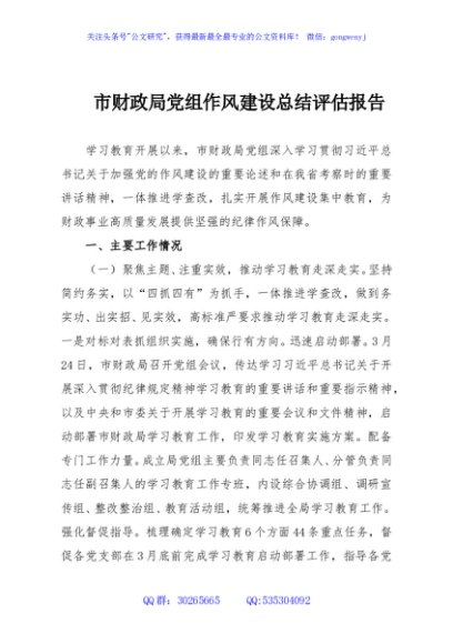 / 市财政局党组作风建设总结评估报告