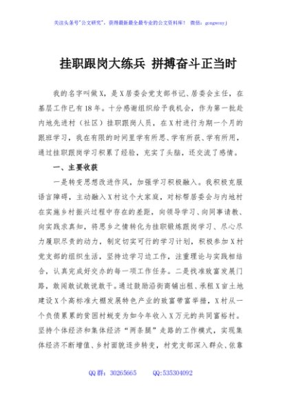 挂职跟岗大练兵 拼搏奋斗正当时