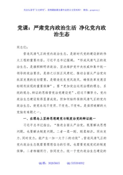 / 党课:严肃党内政治生活 净化党内政治生态