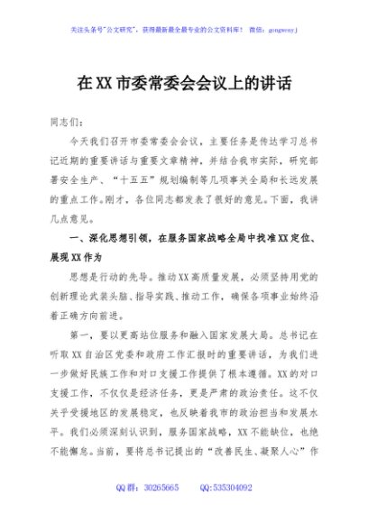 / 在XX市委常委会会议上的讲话
