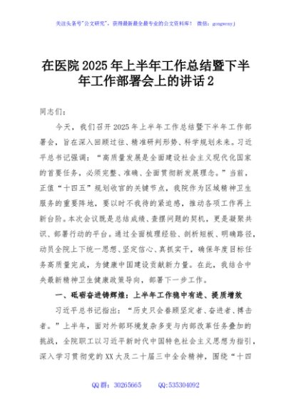 / 在医院2025年上半年工作总结暨下半年工作部署会上的讲话2