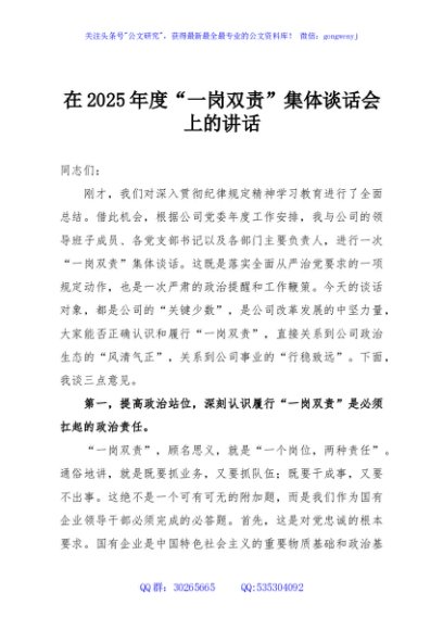 / 在2025年度“一岗双责”集体谈话会上的讲话
