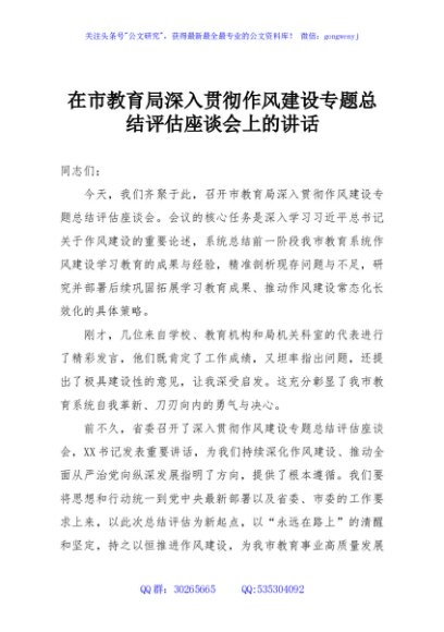 / 在市教育局深入贯彻作风建设专题总结评估座谈会上的讲话