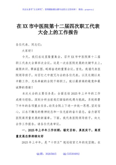 / 在XX市中医院第十二届四次职工代表大会上的工作报告