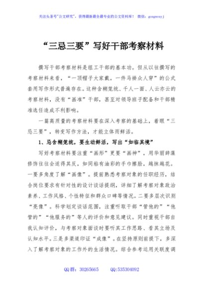 / “三忌三要”写好干部考察材料