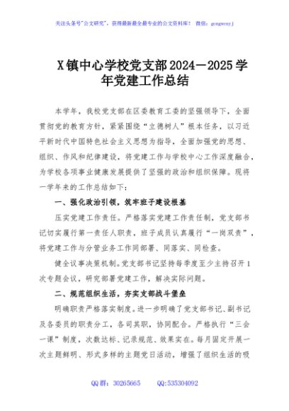 / X镇中心学校党支部2024-2025学年党建工作总结