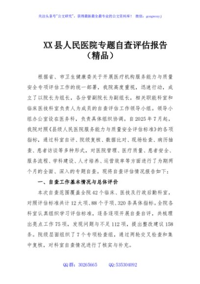 / XX县人民医院专题自查评估报告(精品)