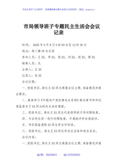 / 市局领导班子专题民主生活会会议记录