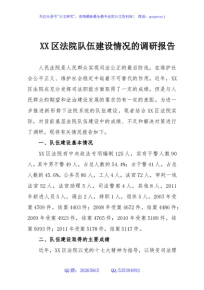 / XX区法院队伍建设情况的调研报告