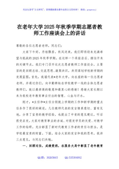 / 在老年大学2025年秋季学期志愿者教师工作座谈会上的讲话