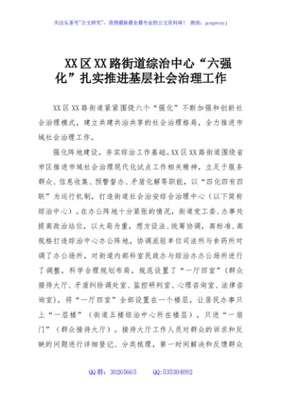 / XX区XX路街道综治中心“六强化”扎实推进基层社会治理工作