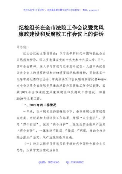/ 纪检组长在全市法院工作会议暨党风廉政建设和反腐败工作会议上的讲话