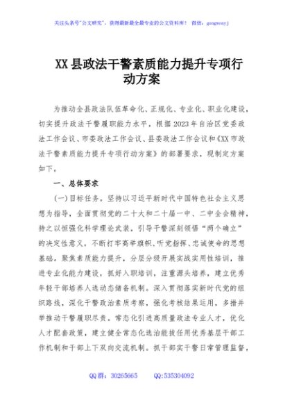 / XX县政法干警素质能力提升专项行动方案