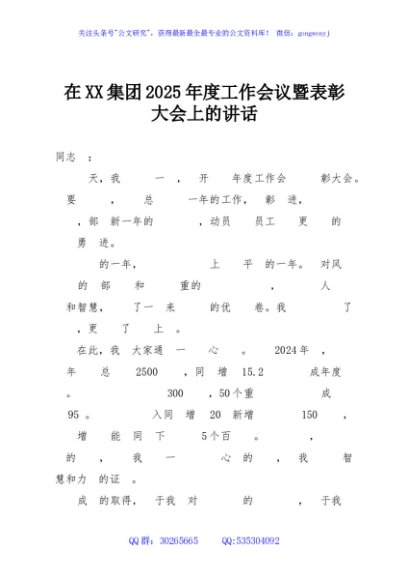 / 在XX集团2025年度工作会议暨表彰大会上的讲话