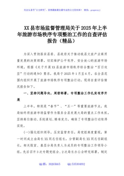 / XX县市场监督管理局关于2025年上半年旅游市场秩序专项整治工作的自查评估报告(精品)