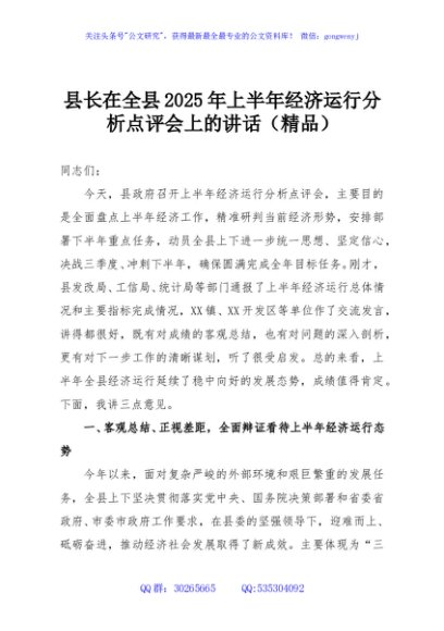 / 县长在全县2025年上半年经济运行分析点评会上的讲话(精品)