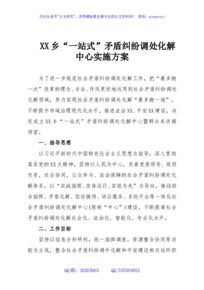 / XX乡“一站式”矛盾纠纷调处化解中心实施方案