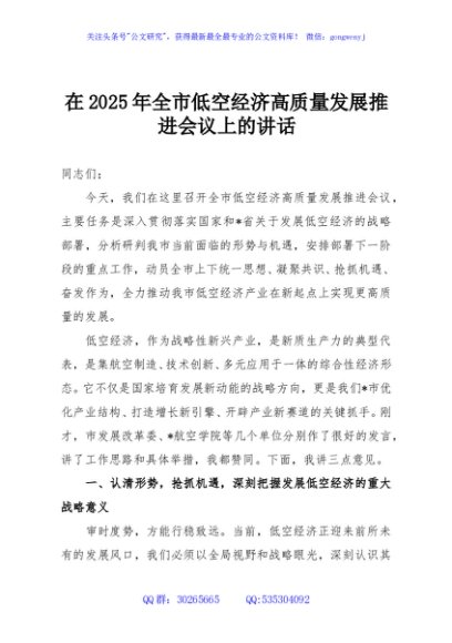 / 在2025年全市低空经济高质量发展推进会议上的讲话