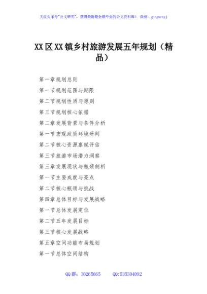 / XX区XX镇乡村旅游发展五年规划(精品)