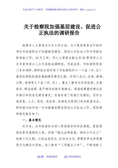 / 关于检察院加强基层建设、促进公正执法的调研报告