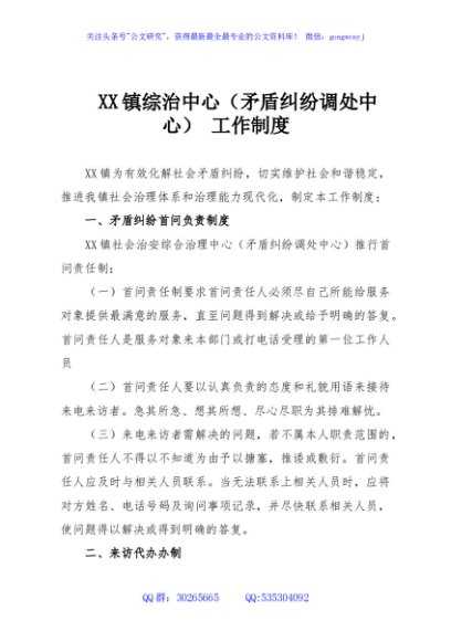 / XX镇综治中心(矛盾纠纷调处中心) 工作制度
