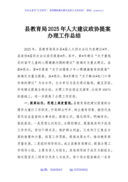 / 县教育局2025年人大建议政协提案办理工作总结