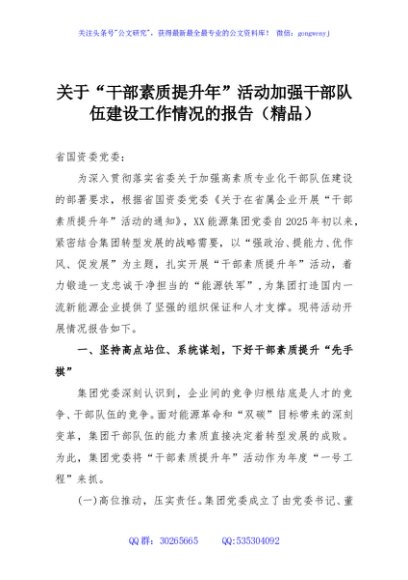 / 关于“干部素质提升年”活动加强干部队伍建设工作情况的报告(精品)