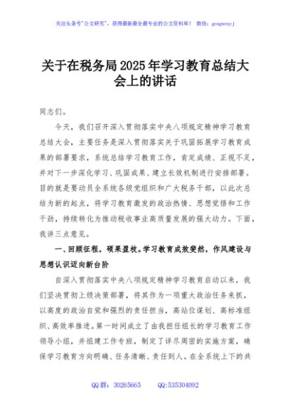/ 关于在税务局2025年学习教育总结大会上的讲话