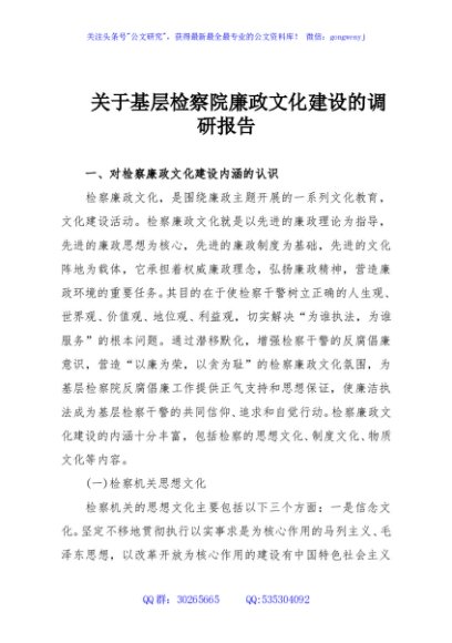 / 关于基层检察院廉政文化建设的调研报告