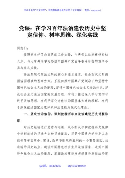 / 党课:在学习百年法治建设历史中坚定信仰、树牢思维、深化实践
