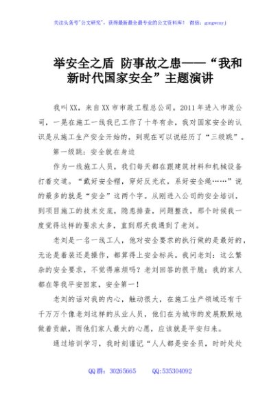 / 举安全之盾 防事故之患——“我和新时代国家安全”主题演讲
