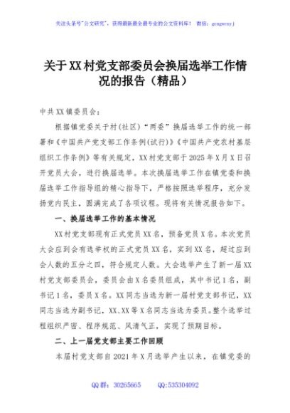 / 关于XX村党支部委员会换届选举工作情况的报告(精品)