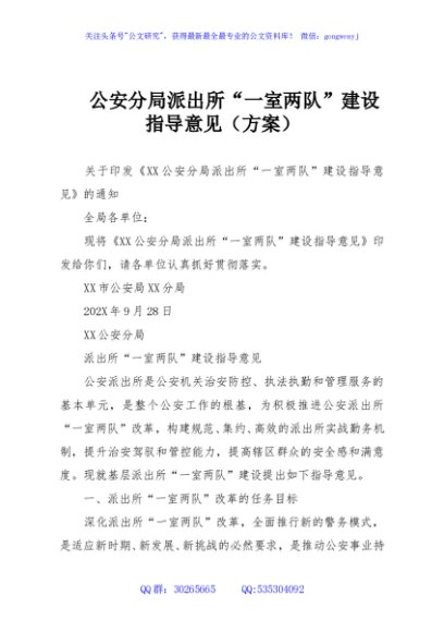 / 公安分局派出所“一室两队”建设指导意见(方案)