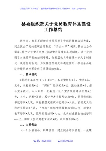 / 县委组织部关于党员教育体系建设工作总结