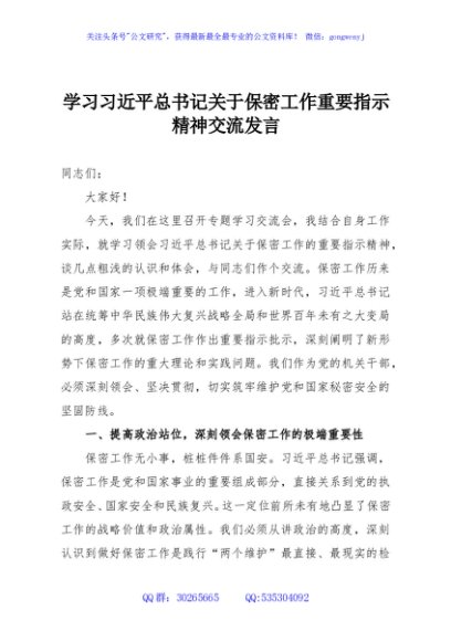 / 学习习近平总书记关于保密工作重要指示精神交流发言