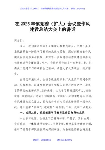 / 在2025年镇党委(扩大)会议暨作风建设总结大会上的讲话