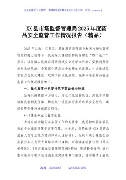/ XX县市场监督管理局2025年度药品安全监管工作情况报告(精品)