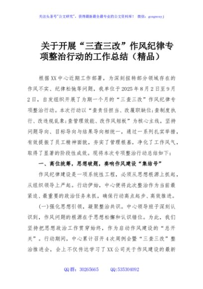 / 关于开展“三查三改”作风纪律专项整治行动的工作总结(精品)