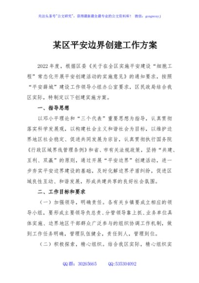/ 某区平安边界创建工作方案