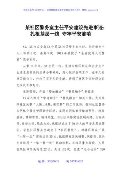 / 某社区警务室主任平安建设先进事迹:扎根基层一线 守牢平安前哨