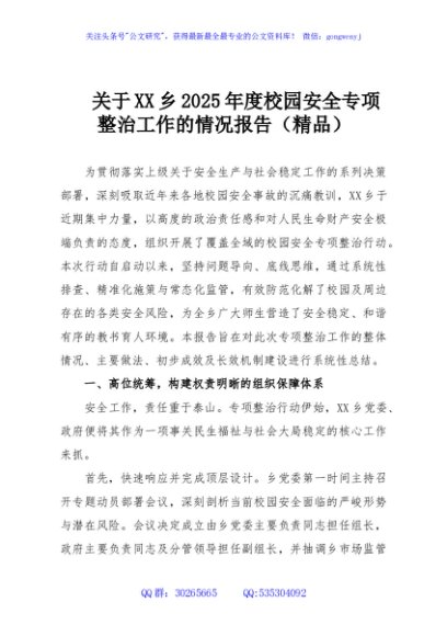 / 关于XX乡2025年度校园安全专项整治工作的情况报告(精品)