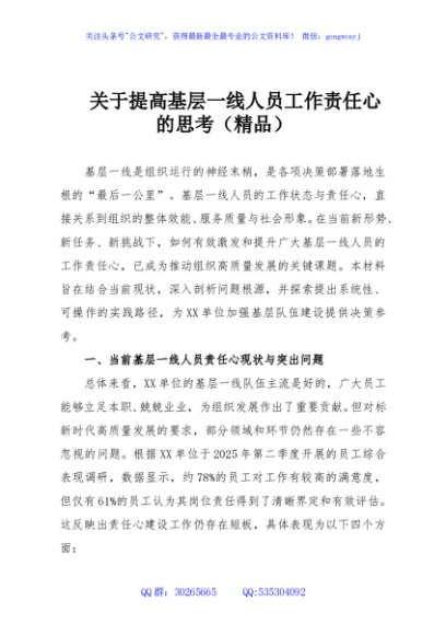 / 关于提高基层一线人员工作责任心的思考(精品)
