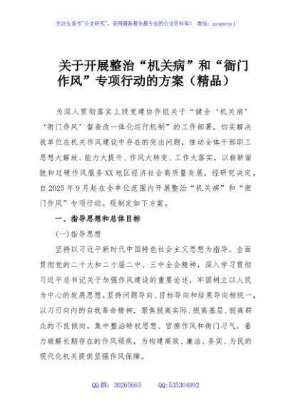 / 关于开展整治“机关病”和“衙门作风”专项行动的方案(精品)