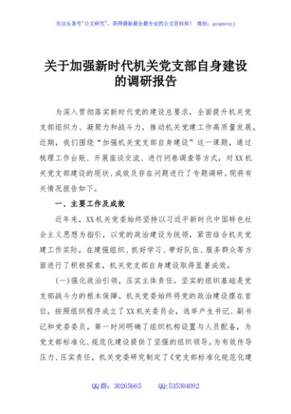 / 关于加强新时代机关党支部自身建设的调研报告